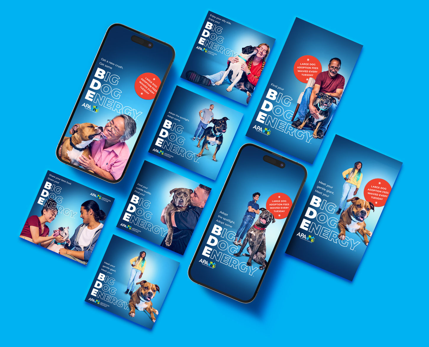The premier STL pet adoption center faced a unique challenge in finding loving homes for its larger canine companions. Recognizing this need, we decided to lean into the trend of 'BDE’, and add a little twist! Spearheading an expansive multimedia campaign for Big Dog Energy, I played a pivotal role in orchestrating a range of work including web design, social media engagement, photography, print materials, billboards, and beyond. I had the pleasure of partnering with a local video production company to creative direct a video shoot that received two Gold ADDY awards at the regional American Advertising Awards.